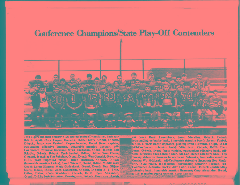 The 1992 and 1993 football teams played a role in this combining for a 19-2 record and a semi-final appearance. (Of course, the basketball team was the Nebraska Class C2 Runner-up in basketball for the 1993-1994 season.)