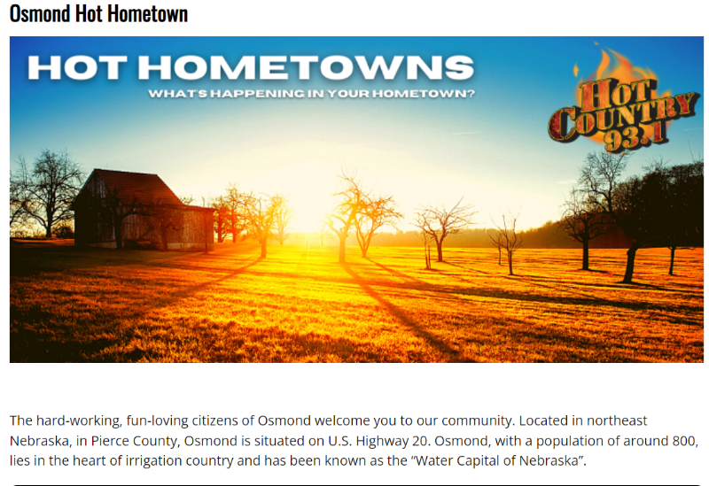 Osmond Community School has partnered with KKYA (93.1) radio station out of Yankton, SD to be a participant in their weekly Hot Hometown segment. Every Monday at 11 A.M. the segment takes place and a few schools across Nebraska and South Dakota will share some information about what is going on at the school. This is a great opportunity to inform the area about upcoming events at Osmond and to share our successes. If you happen to miss the students' segment each week, here is a link to our recordings that will be published on KKYA's website. Our first show took place this morning and will continue to air every Monday throughout the school year.